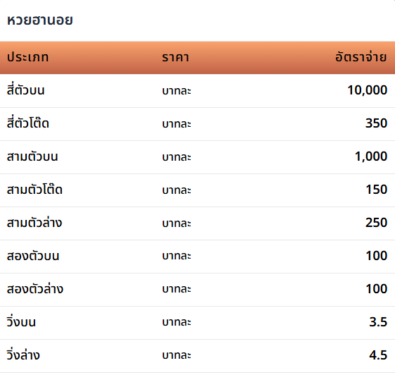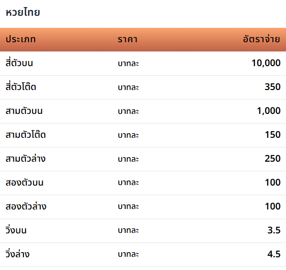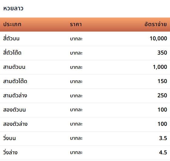 | งวดหวย | สี่ตัวบน | สามตัวบน | สองตัวล่าง |